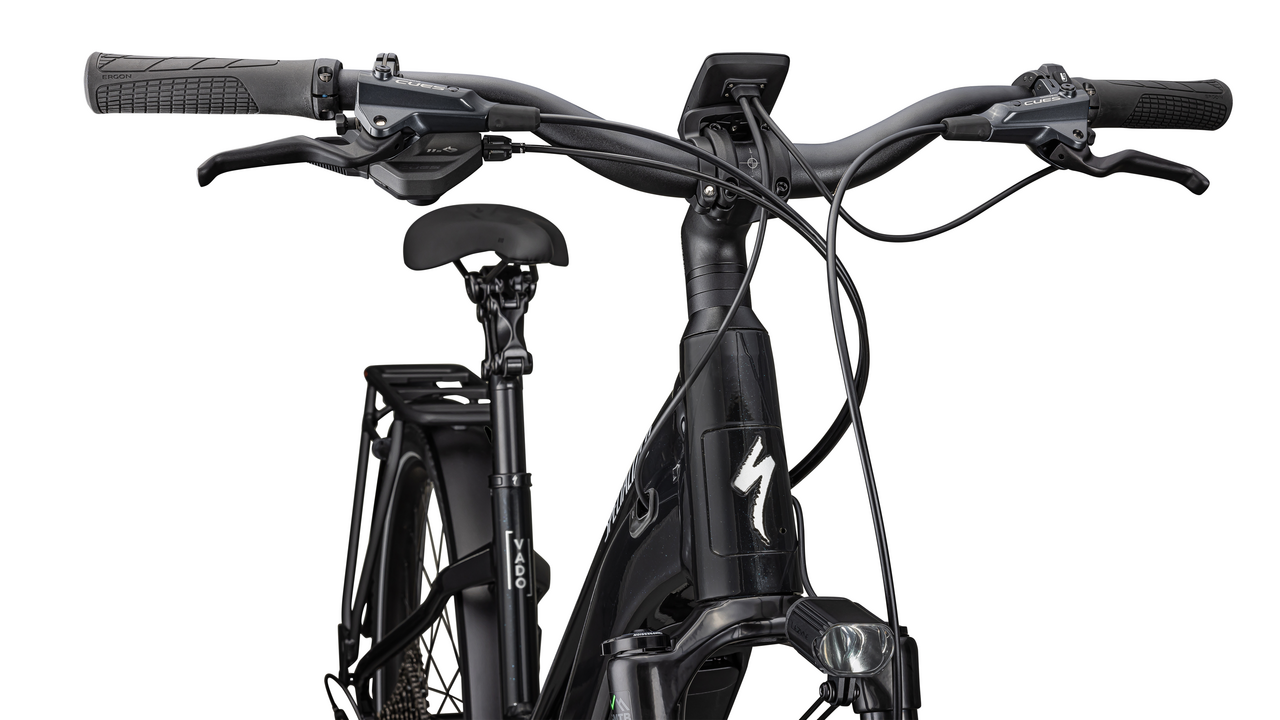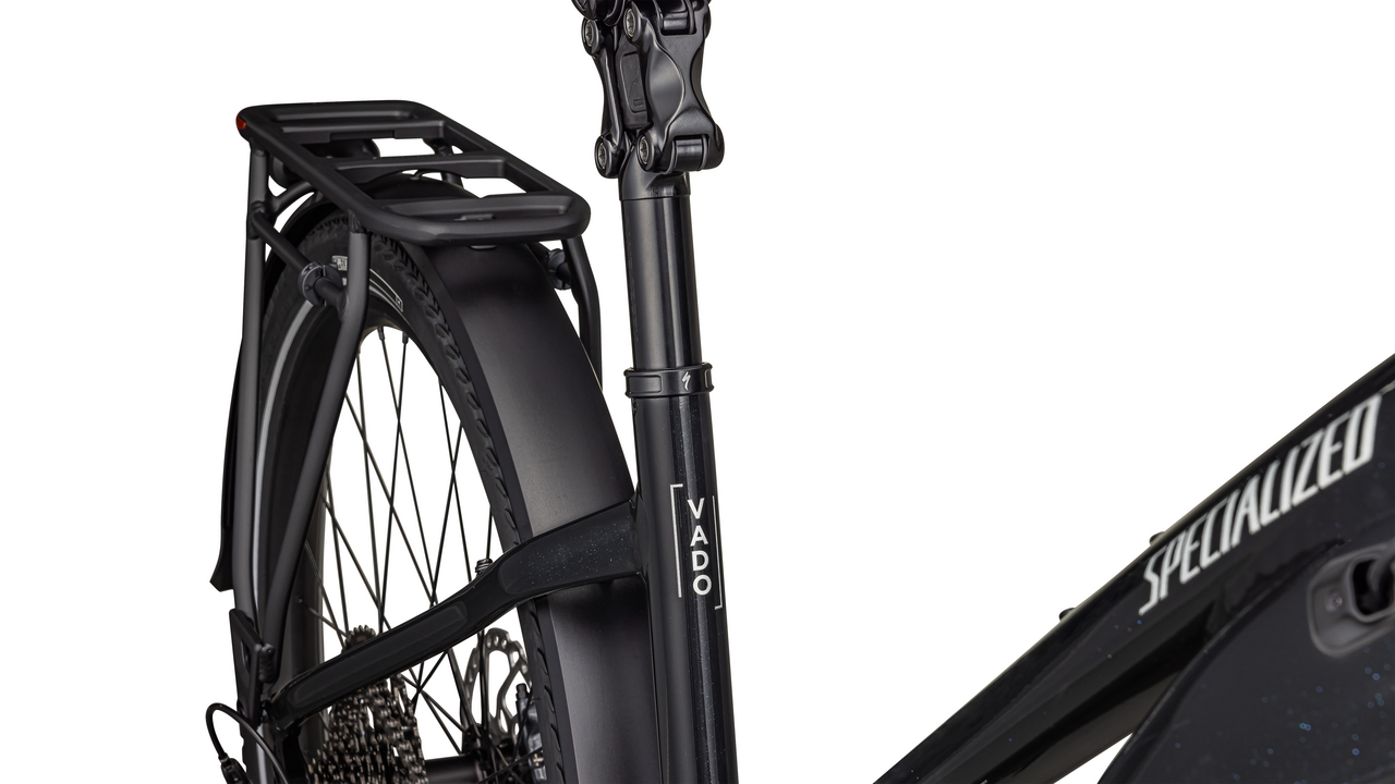Consider Vado your high-performance transportation bike, getting you where you’re going with an unmatched combination of speed, reliability, and confidence. Whether you load it up with your stuff, or jump on and go, commute to work, or ride to the gym, Vado’s full power and huge range will get you from ‘point A’ to ‘point B’ ASAP. The Specialized Vado has everything you need for e-powered transport. It brings a balanced nature to the way it handles and superior levels of comfort. This is a true class leader of its type. TURBO: The heart of the Vado is its Turbo technology, an advanced and integrated electric bike system that delivers an unequaled combination of power, natural feel, anti-theft functions, training tips, and a full-function bike computer. POWERFUL: It’s you, just faster — it’s 4x You. The Turbo Full Power system senses the force you apply to the pedals and naturally quadruples it for an experience that makes getting up any hill or to any destination no sweat. Literally. COMFORTABLE AND CONFIDENT: Body position and handling are optimized to deliver unsurpassed riding comfort, confidence, and control. Powerful hydraulic disc brakes reign in your speed, while larger tires provide maximum traction for turning and stopping. SMOOTH: Stay comfortable in the saddle with an 80mm front suspension fork, higher volume tires, and a plush suspension seat post that smooths harsh bumps from points A to B. SECURE: Vado has anti-theft lock built right into the bike. Prevent would-be bike thieves by disabling the motor with a press of a button so no one can turn on the motor without your phone connected to the Specialized app or your personalized pin. The Vado’s battery locks in the bike or can be easily taken with you. And if anyone tries to move your bike an alarm will sound. Beat it, thieves. The speed limit at which the motor will stop supporting may vary significantly by region and is based on local requirements. It may also affect range: a higher speed limit may result in less range.